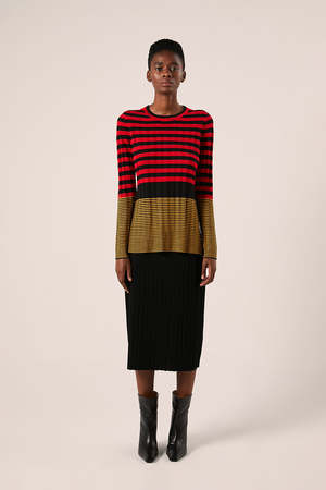 This rib knit sweater with bold stripes features a crew neck, long sleeves, side splits and a slim fit - Viscose 100% - Dry Clean - Made in China