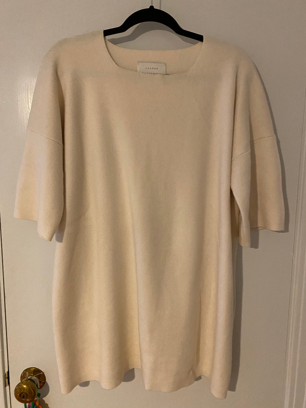 Lauren Manoogian beautiful interlock tunic. side pockets. Raw white color. Size 2. Made in Peru. 100% organic cotton. Rarely used. the only sign of use is illustrated in the last photo.