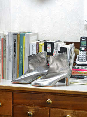 All of Martiniano's styles reference (and feel like) the classic ballet slipper. The Party Boot is no different, despite the pointy toe and kitten heel. You still get that graceful, minimal feel. Rear zip closure. Strong, but thin and flexible leather outsole. 2" heel.