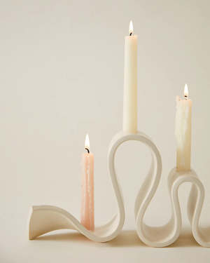 Add some more drama to the season with a centerpiece that demands more attention than your most vocal guest. 18"L x 2.5"W x 6"H Fits a 3/4" bottom, standard taper candle cup size Ceramic: Stoneware HANDMADE IN BROOKLYN, NY