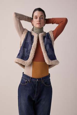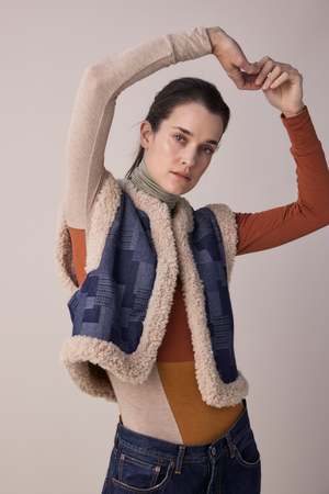 About Product Fur Trim Denim Vest - This vest is crafted from a natural blend of wool and cotton, offering a soft and comfortable feel with a touch of warmth. Designed with meticulous attention to detail, the fur trim adds a touch of elegance and sophistication, giving the denim vest a chic and glamorous look. With its versatile and classic denim design, this vest can be effortlessly styled with various outfits, making it a go-to choice for adding a trendy and cozy layer to your ensemble. The wool-cotton blend fabric ensures both softness and durability, making this vest a long-lasting and timeless addition to your wardrobe. SIZE AND FIT Approximate measurement on size XS / S Model size: 5' 10'' 31 1 / 2-24-37 wearing a size XS / S Fit: Measured flat. LT: 20 1 / 2" Chest: 20 1 / 2" Across Shoulder: 14 3 / 4" Bottom opening: 20 3 / 4" WASHING INSTRUCTIONS: Dry cleaning only