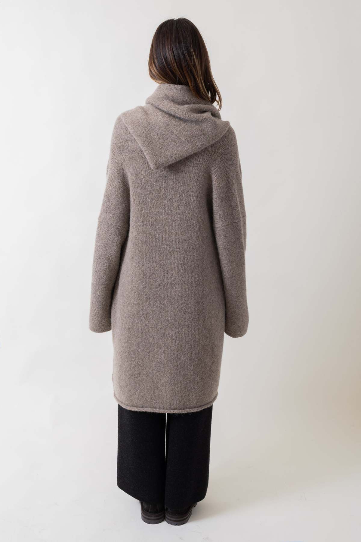 Softly felted alpaca coat with a relaxed hood and integral pockets in driftwood. - 93% Alpaca, 7% Polyamide - Made in Peru - Model is 5'8