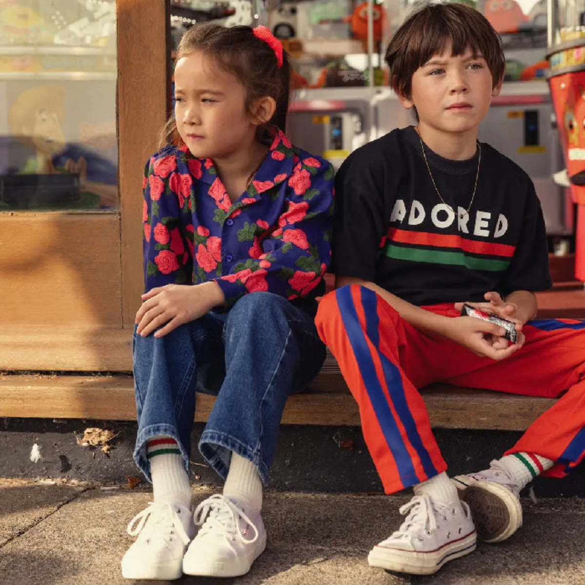 Mini Rodini a Swedish organic children's wear brand founded in 2005 by illustrator Cassandra Rhodin. The brand is a tribute to all children, their imagination and sense that everything is possible. The Mini Rodini collections take children seriously with a playfulness that matches your child's own personality and mood. - Oversized fit fleece sweatshirt - Adored print with red and green stripes across the chest - Ribbed knit trim - Long sleeves with dropped shoulders 100% Organic Cotton