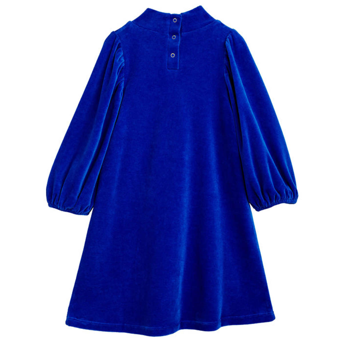 Mini Rodini a Swedish organic children's wear brand founded in 2005 by illustrator Cassandra Rhodin. The brand is a tribute to all children, their imagination and sense that everything is possible. The Mini Rodini collections take children seriously with a playfulness that matches your child's own personality and mood. - Blue velour dress with a high neck - Jewels appliques on the front - Snap closure down the back - Long puffed sleeves with elasticized waist 100% Organic Cotton