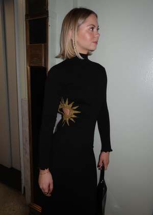 Add a little sunshine to your life this season with this lurex sun maxi dress. This knitted maxi is made from organic cotton for a soft luxurious feel, featuring a golden lurex sn cutout on the side. The dress has a high neckline and a frilled hem for those extra little details. Never worn, brand new. Just tried on once.