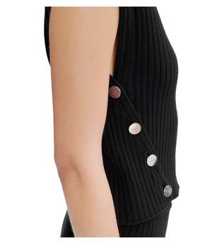Black sleeveless top in organic cotton-wool blend. -Straight cut. -Stand-up collar. -Closure on each side with four silvertone buttons engraved A.P.C. -May be worn with Raven skirt. 80% organic cotton and 20% GOTS-certified Merino wool. BLACK