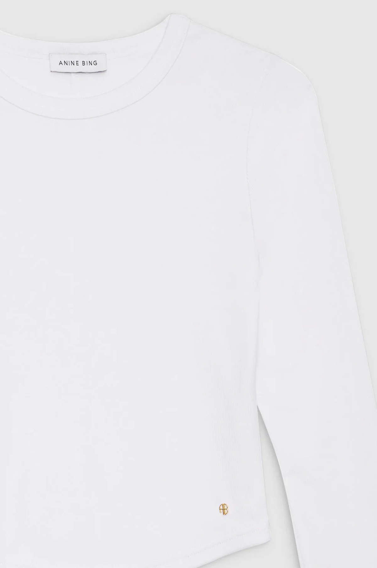 description: A basic long sleeve top crafted from a ribbed modal jersey blend with a super soft hand and slight stretch. This layering essential features a crew neckline and shirttail hem. Finished with a small stitched ANINE BING monogram charm at the wearer's bottom-left hem. fabric: 69% Modal, 31% Polyester Machine wash Made in China measurements: The Jane Top is cut for a close-fitting silhouette. Take your true size. Model is wearing a size S. Model Measurements Height 5'9", Bust 30", Waist 23", Hips 34" Product Measurements (Size S) Length 20.4", Bust 15.3", Sleeve Length from Centre Back 31.5"