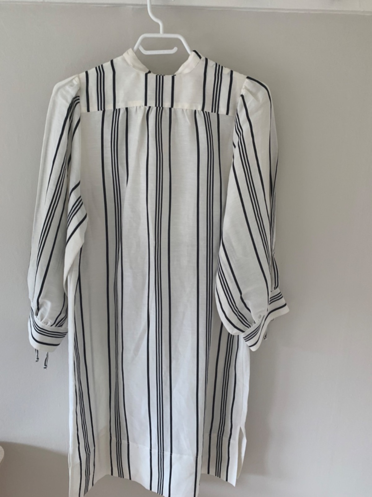 Perfect condition. Unworn, no tags. Silk blend dress. Button closure, lovely detail on sleeve.