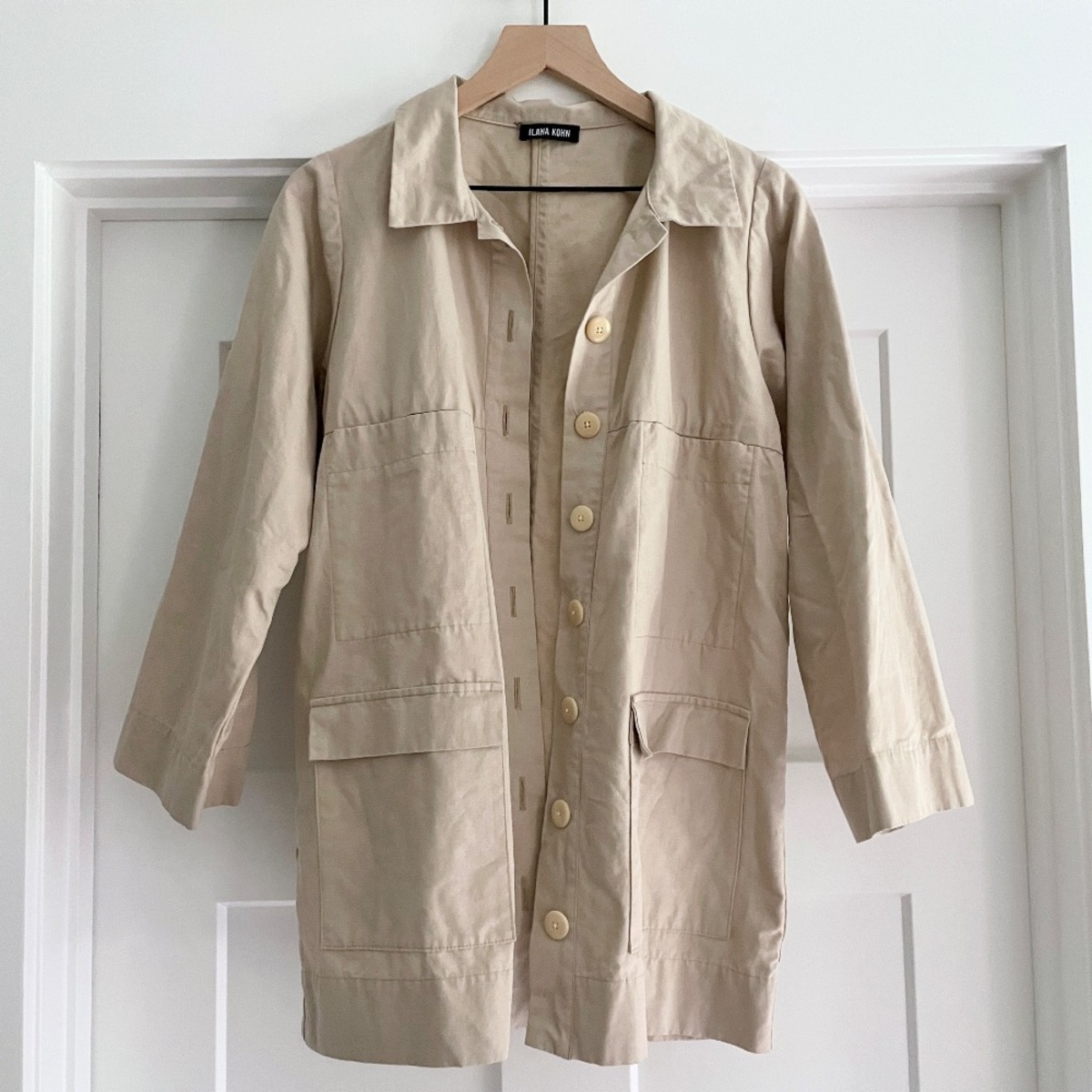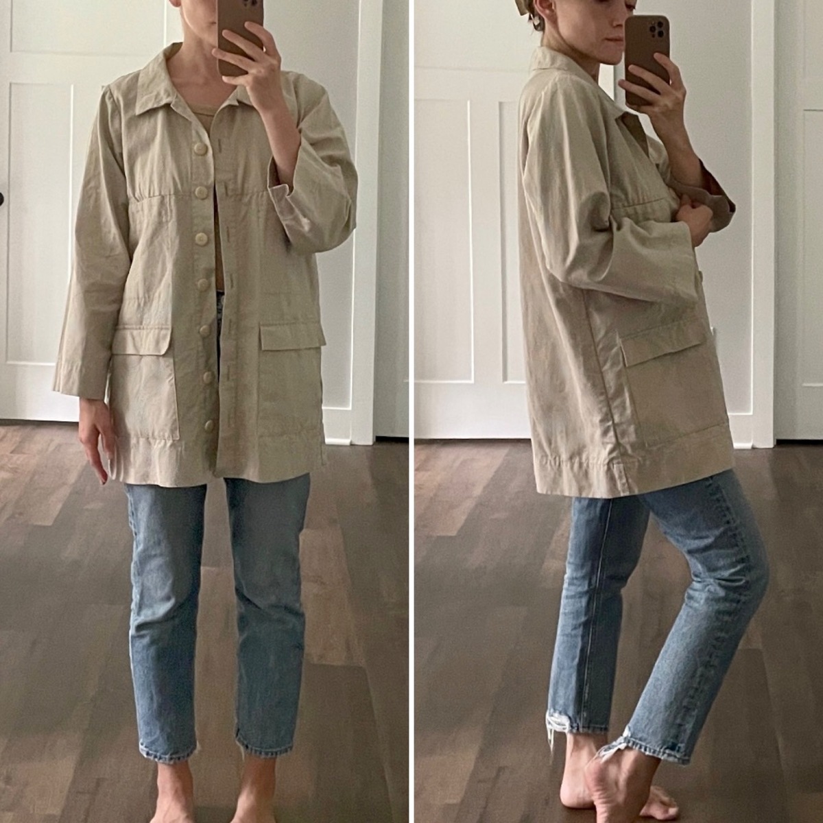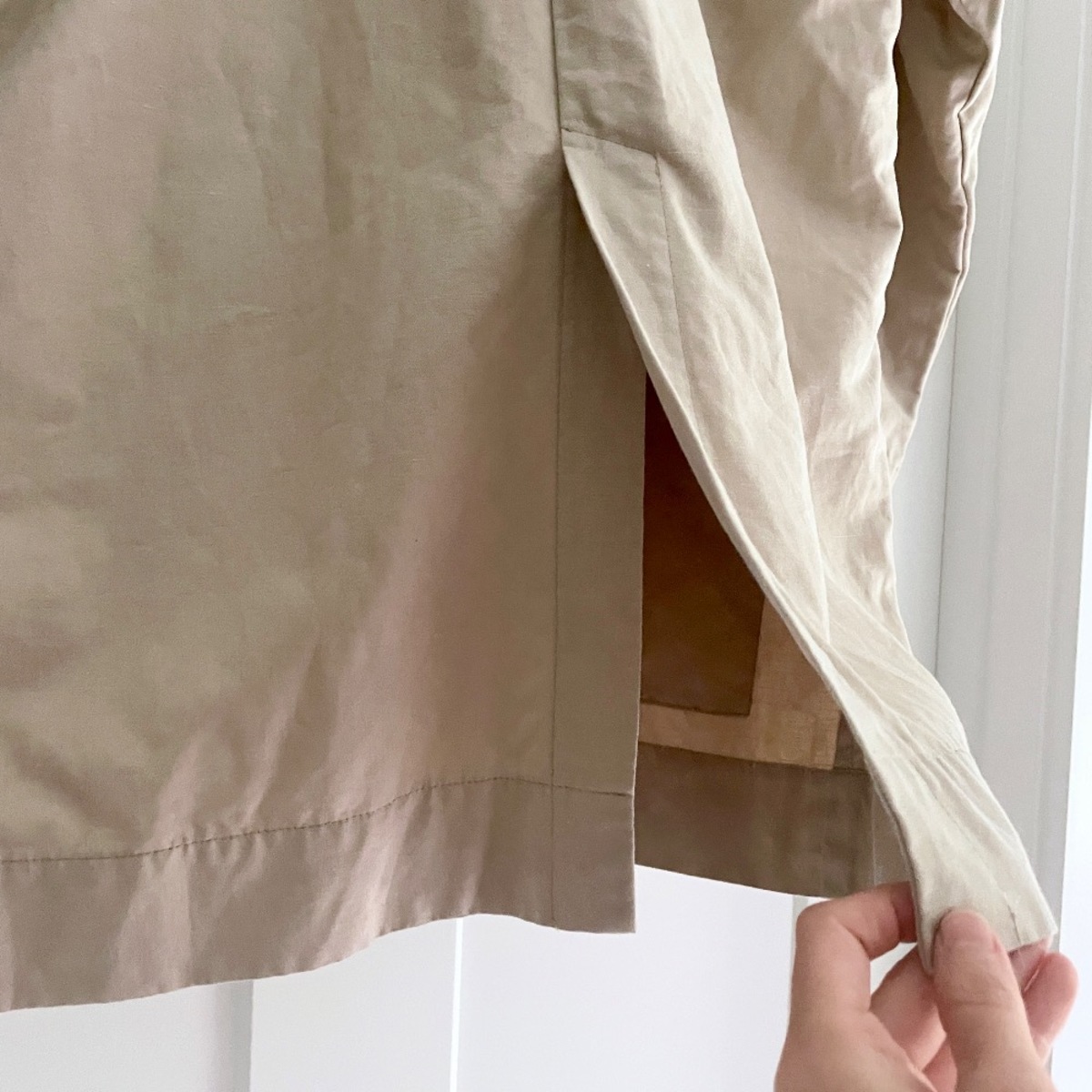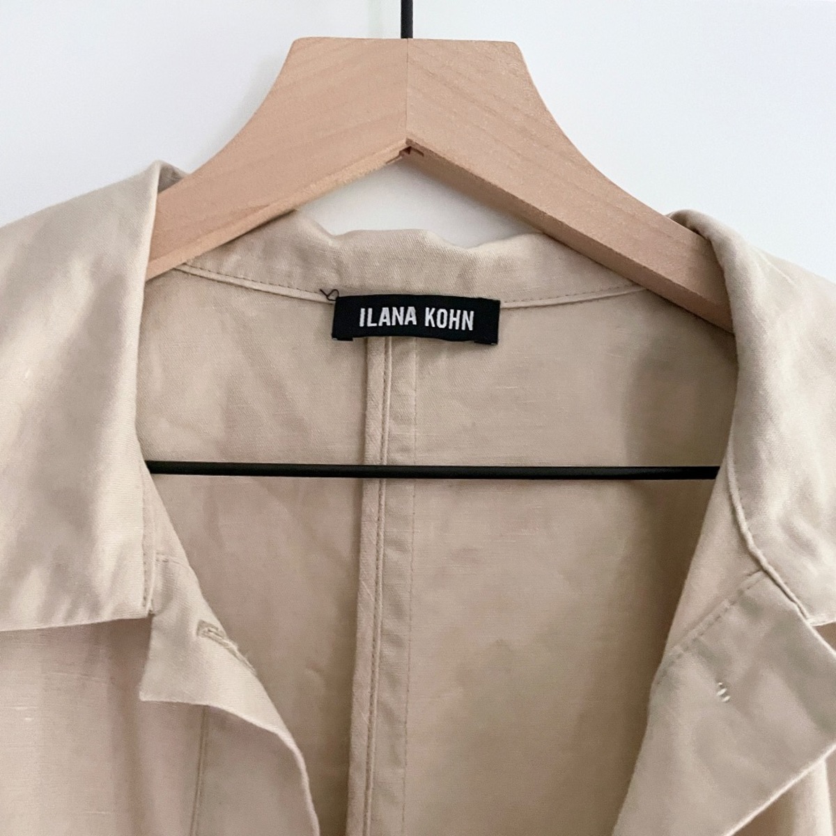 Great pre-owned condition, no rips stains or wear. Missing size and care tag. Measures like a small. Please see below measurements and sizing info to ensure proper fit for you! Approximate measurements: 20.5" pit to pit 29" length from top of shoulder seam to hem 22" sleeve length from top of shoulder seam to cuff (measured at outer edge of sleeve) Model in mirror photos is 5'3" and typically size XS / S in tops 25 / 26 in bottoms. 45% COTTON / 55% LINEN