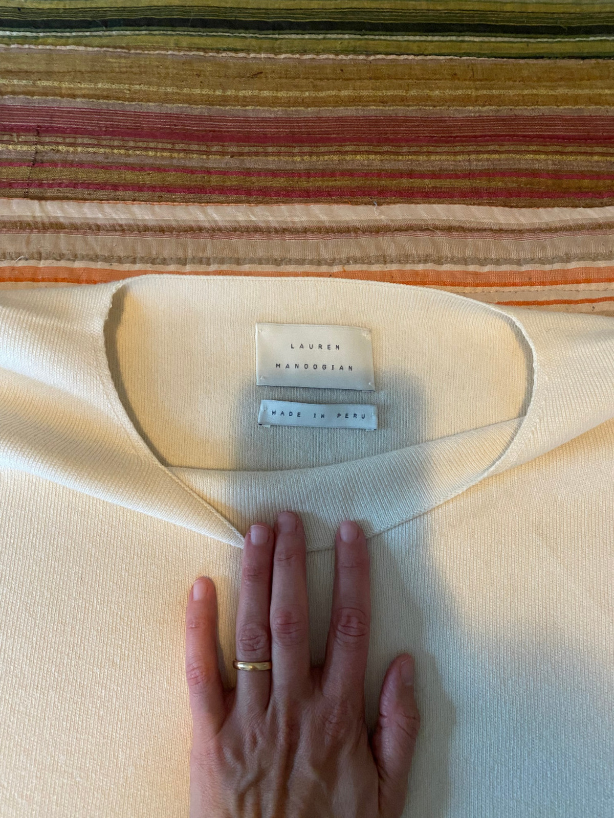 Lauren Manoogian beautiful interlock tunic. side pockets. Raw white color. Size 2. Made in Peru. 100% organic cotton. Rarely used. the only sign of use is illustrated in the last photo.