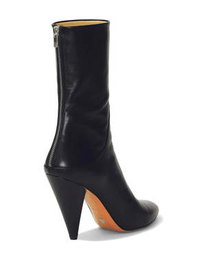 Proenza Schouler's Cone Ankle Boots are made in supple nappa leather and characterized by an almond toe and sculptural cone heel. Cut to a close fit, they're complete with a zip fastening to the back. Product Details Designer ID: PS41201A18020 Color: Black Composition: Outer: Lambskin 100%; Sole: CALFSKIN 100%; Lining: Lambskin 100% Heel height: 3.3" Made in Italy